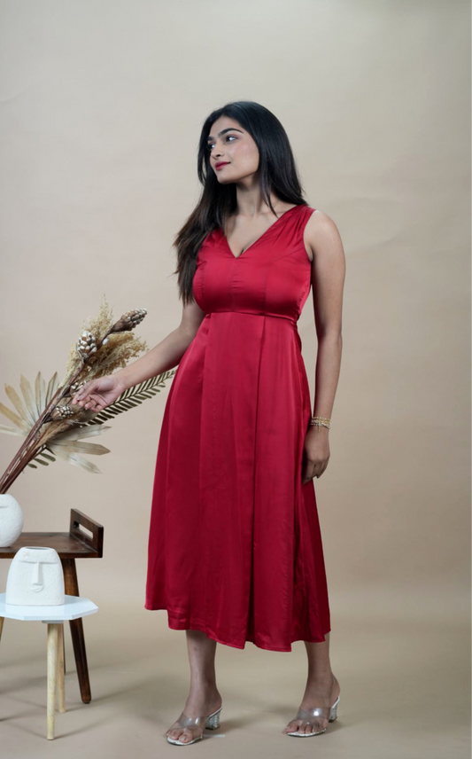 Solid Red Satin Sleeveless Dress