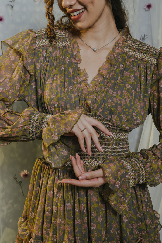 Green Lyra Designer Floral Dress